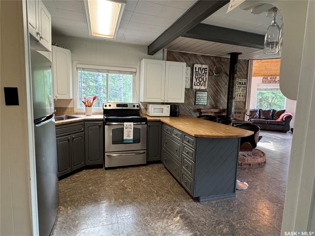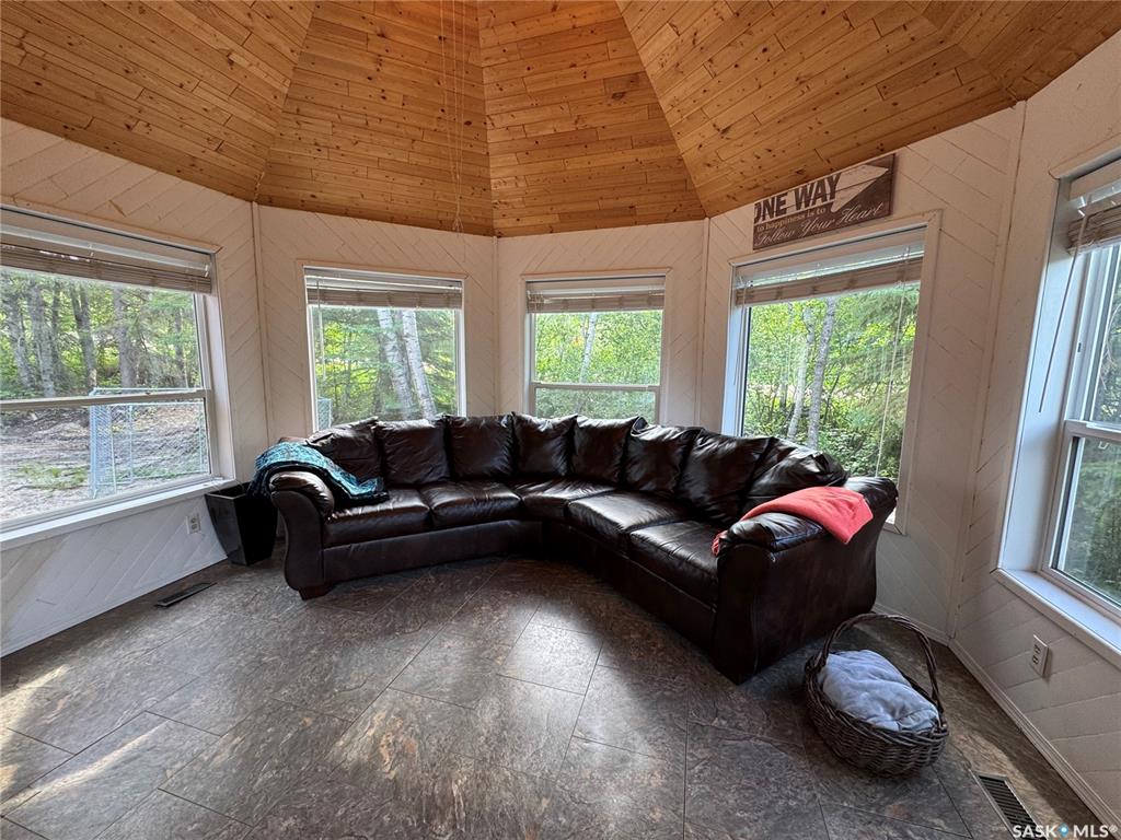 Feels like your in a fairytale, turret and all! Wake up to the soothing sounds of nature that surround you all year round. Nestled in the Boreal forest just a 6 minute walk to the public beach, where you can swim, kayak, paddleboard or canoe. Open house concept so you can entertain and still prepare an amazing meal for friends and family. On those chilly nights curl up with pillows and blankets in front of the tv in the turret room. Lots of windows to let the sunlight stream in. Newly renovated so you just...