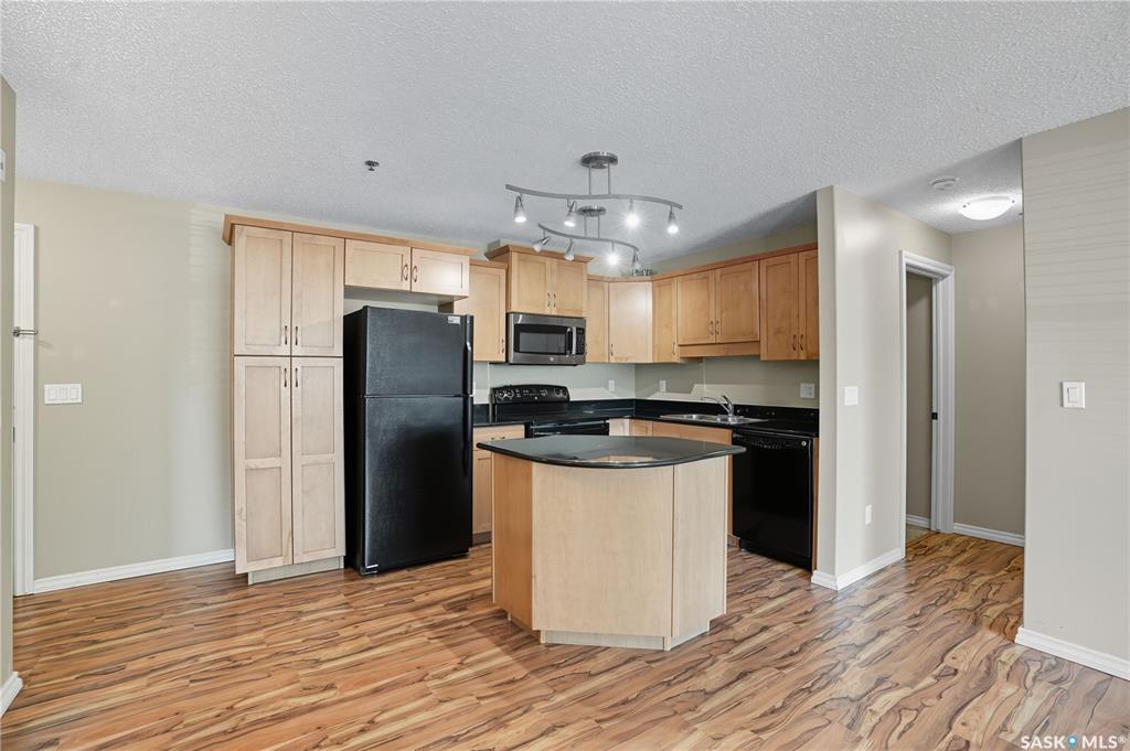 Welcome to The Villagio! Pristine main floor condo in the heart of Stonebridge. This open concept condo features two bedrooms and one 4 piece bathroom, in suite laundry, patio, southern exposure and 2 electrified parking stalls. Kitchen features island and eating bar, maple cabinets with soft close hinges and drawers, granite counter tops, and black appliance package including fridge, stove, dishwasher and over the range microwave/hood fan. Laminate flooring is featured in foyer, kitchen, dining and livin...