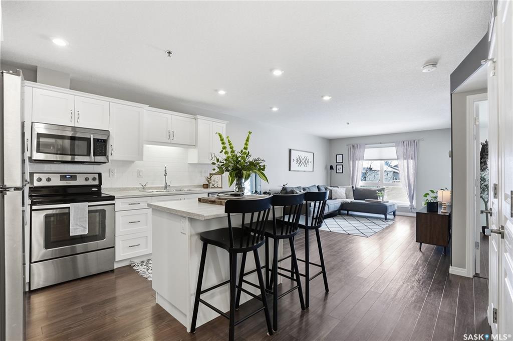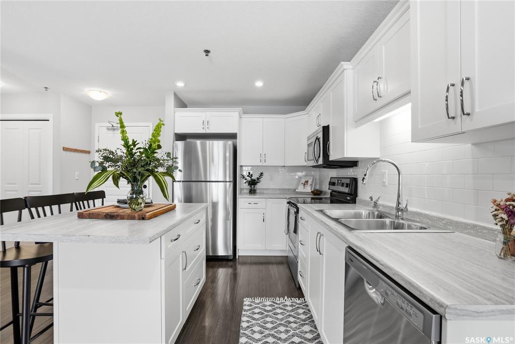 Fresh, beautifully maintained, and completely move-in ready — welcome to the coveted Serenity Pointe in Stonebridge! This one-bedroom condo is impressively spacious with a layout that maximizes every square inch, all in one of Saskatoon’s most loved neighbourhoods. This bright south-facing condo greets you with an open-concept design anchored by a full-size kitchen with a large island to allow you to cook, host, and spread out without compromise. Quality cabinetry, stainless steel appliances, and smart s...