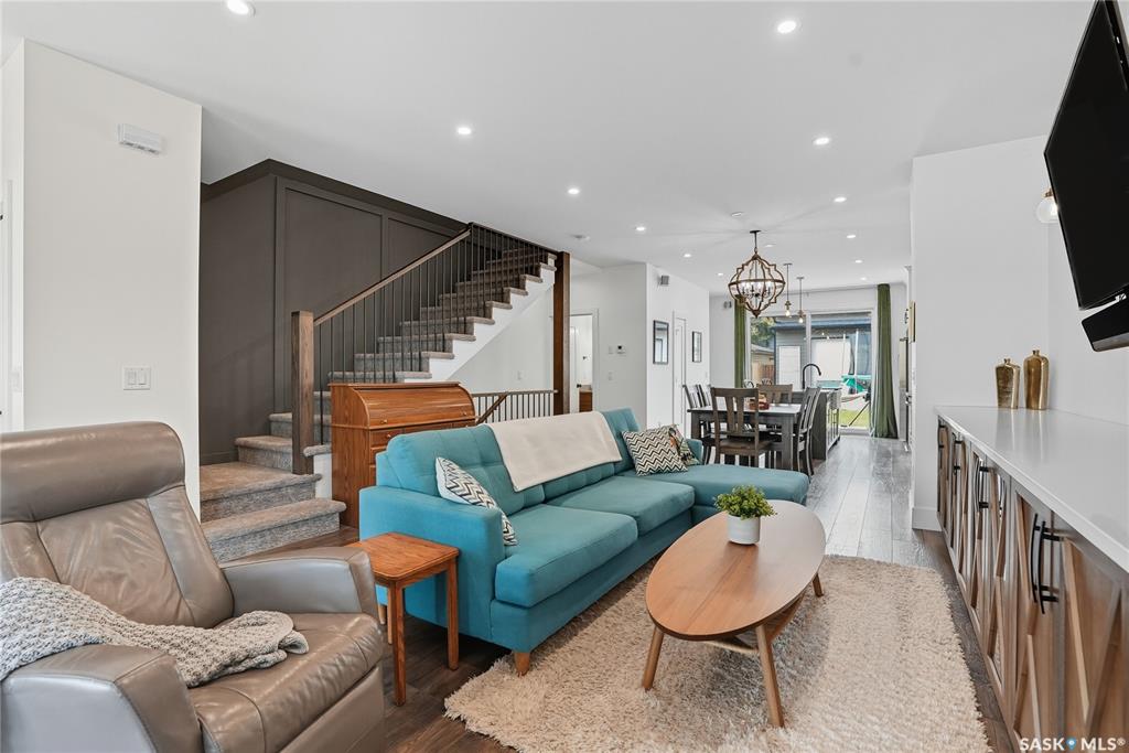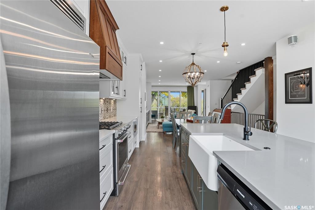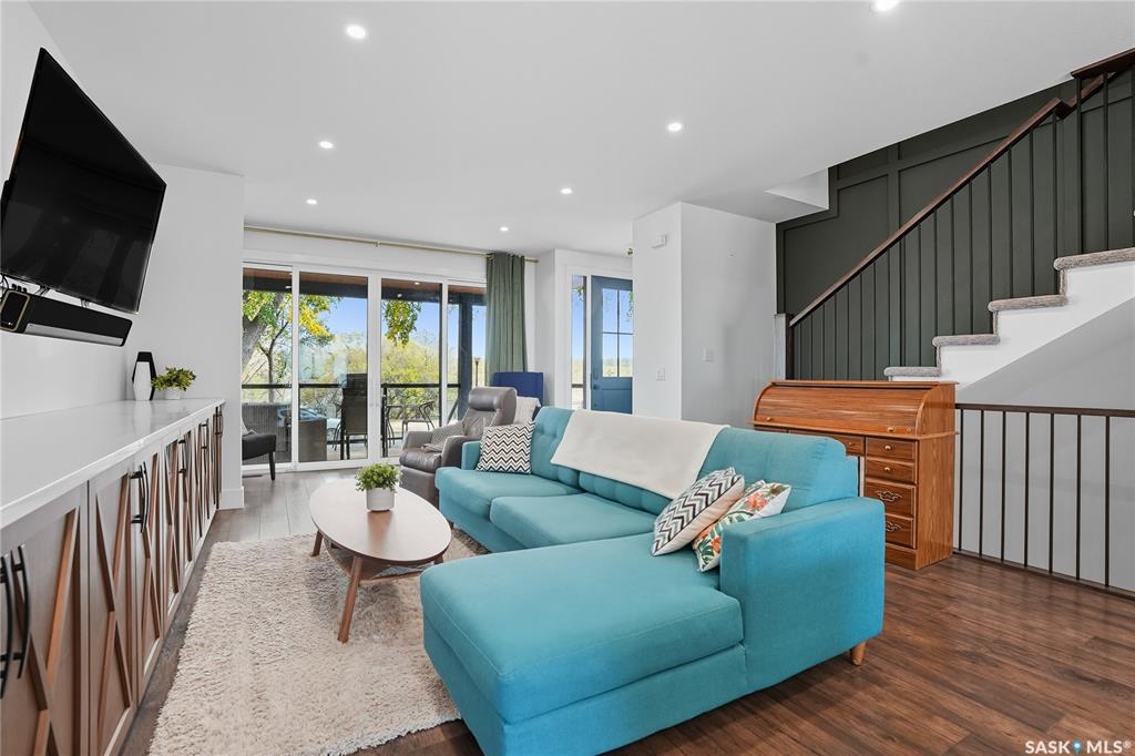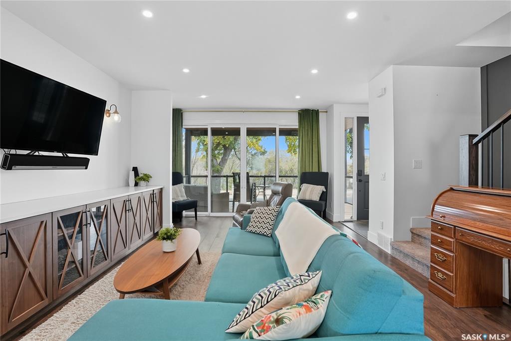 Located on prestigious Spadina Crescent East, this stunning riverfront home is perfect for those looking for a family-friendly home in a sought-after neighbourhood. The main floor boasts hardwood flooring throughout with views from the oversized windows in the living room which opens seamlessly to the dining area and designer kitchen - complete with quartz countertops, an abundance of cabinet space, high-end appliances and island with seating. A convenient 2-piece powder room and mud room completes this lev...