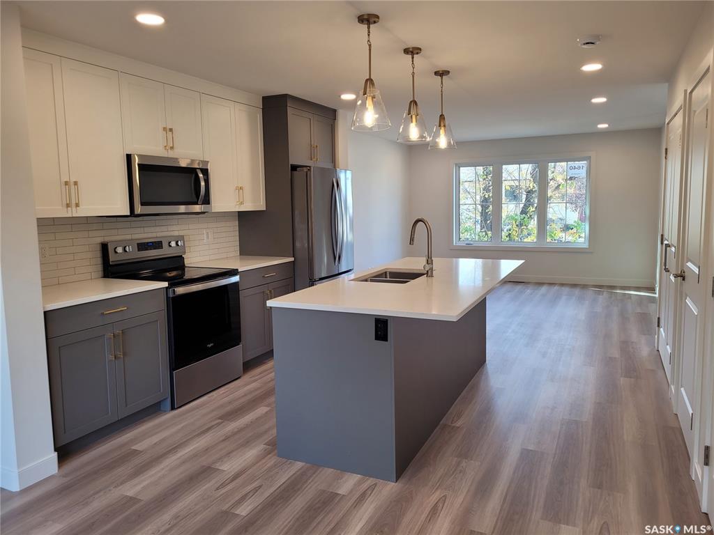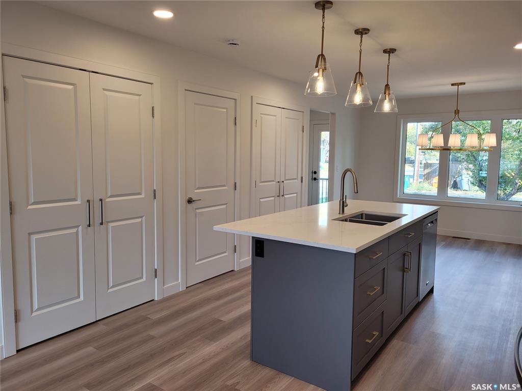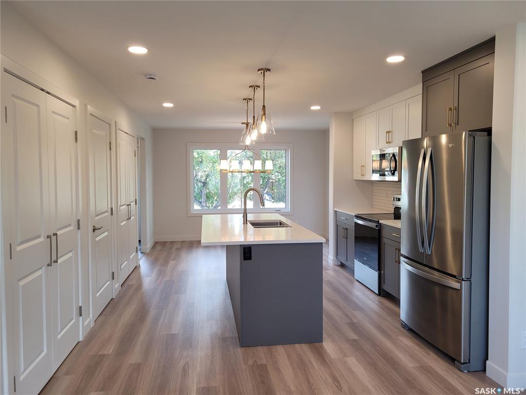 This new build in Kelsey Woodlawn is a must see! Thoughtfully designed and beautifully finished, this home is in a fantastic location that is a short walk to downtown and close to both the U of S campus and SIAST. This spacious 1400 sq. ft. two-storey, 3 bedroom, 2.5 bathroom semi-detached home has great street appeal and features a nice, open floorplan with dedicated dining area. Tons of natural light pours through this home with the abundance of windows throughout. Gorgeous island area in the kitchen feat...