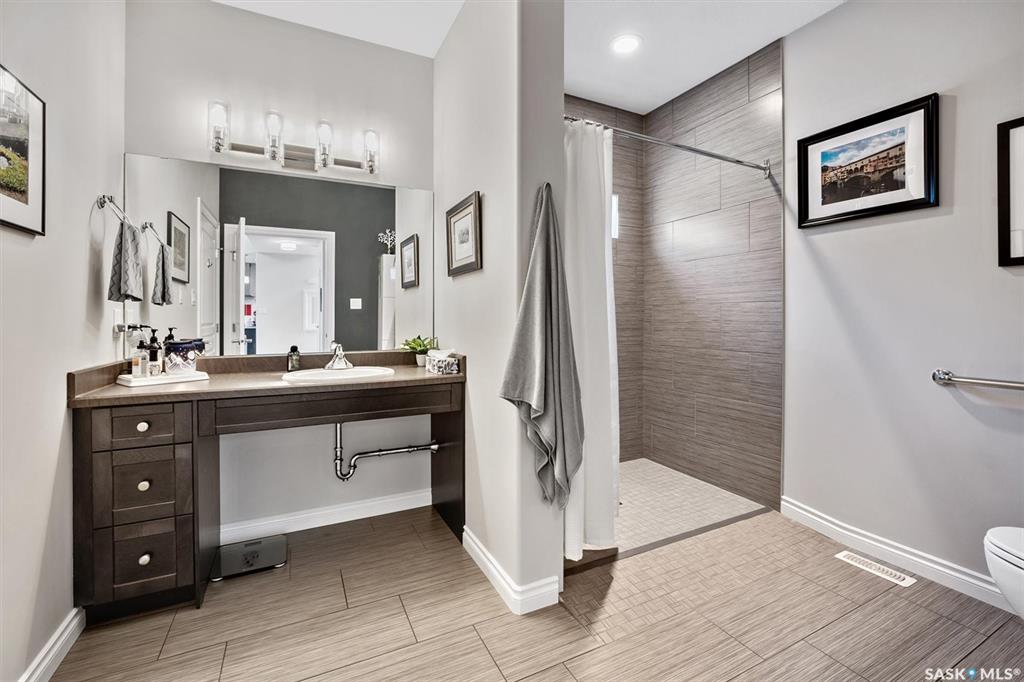 Immaculate custom-built home in Warman with Premium finishings designed with wheelchair accessibility in mind. Main Floor: Extra-wide galley kitchen with granite counters, high-end appliances (gas stove/hood fan, double-door fridge/freezer, built-in microwave, dishwasher). Main-floor primary bedroom with walk-in closet and direct access to 3-pc accessible bath. Wide hallways, lever handles, roll-under sinks. Personal 3-stop elevator with access to garage, main, and basement. Second Floor: Second primary bed...