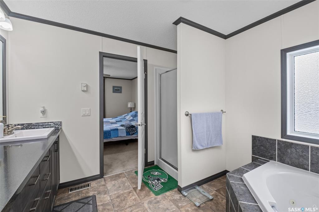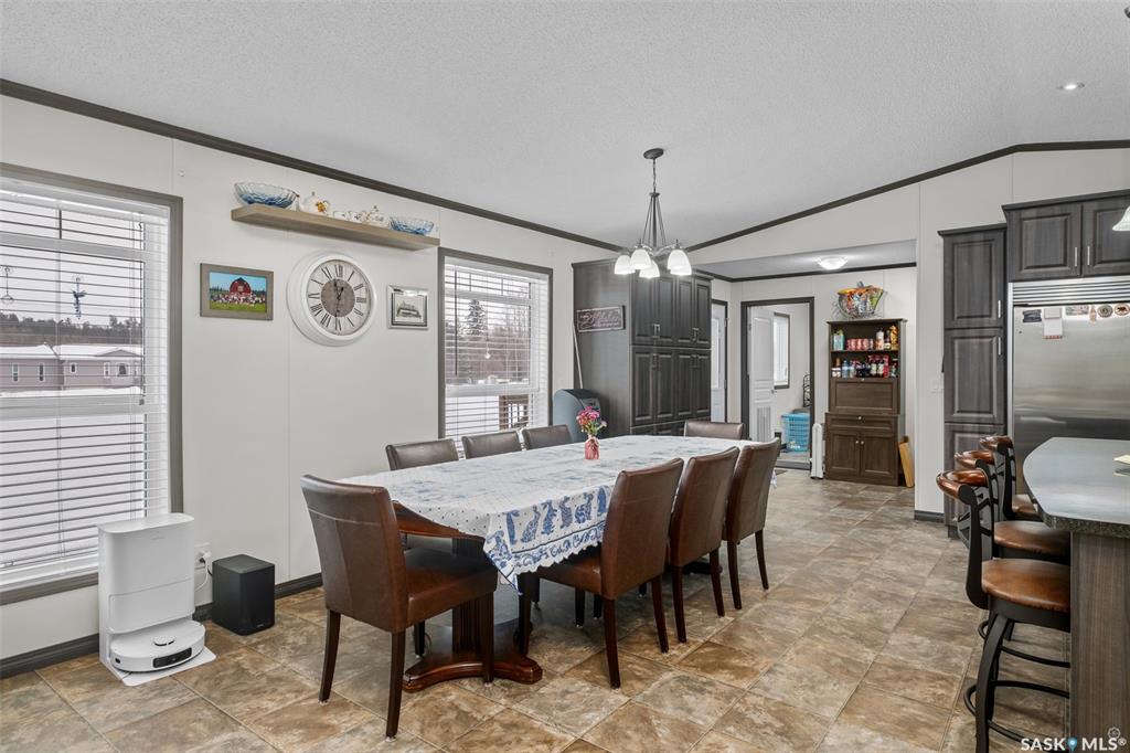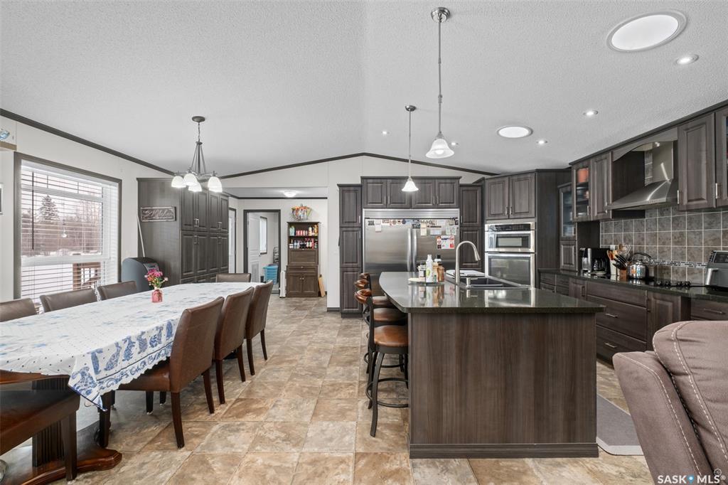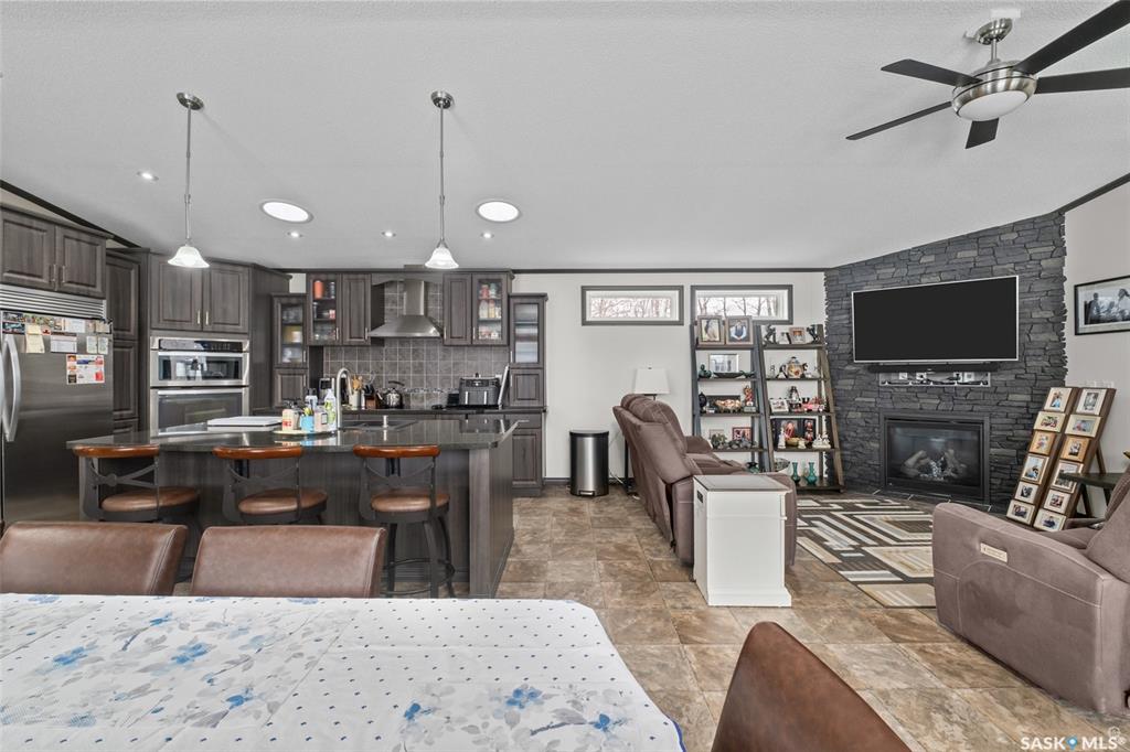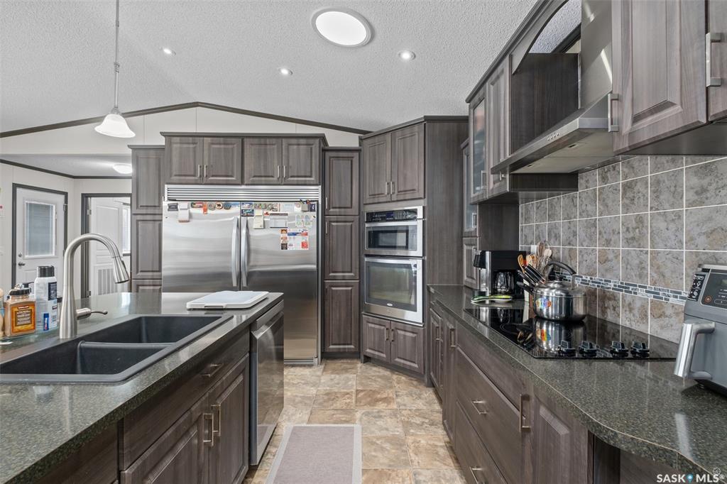 Exceptional 2016 built 3 bedroom and 2 bathroom premier show model manufactured home offering spacious design, quality finishes and small town living just minutes from the city. The open concept main living area is bright and beautifully laid out with vaulted ceilings, an abundance of windows and stylish pot lighting that enhances the modern feel throughout. The living room features a cozy gas fireplace with a dark grey stone surround and the dining area offers plenty of space for a large table. The kitchen...