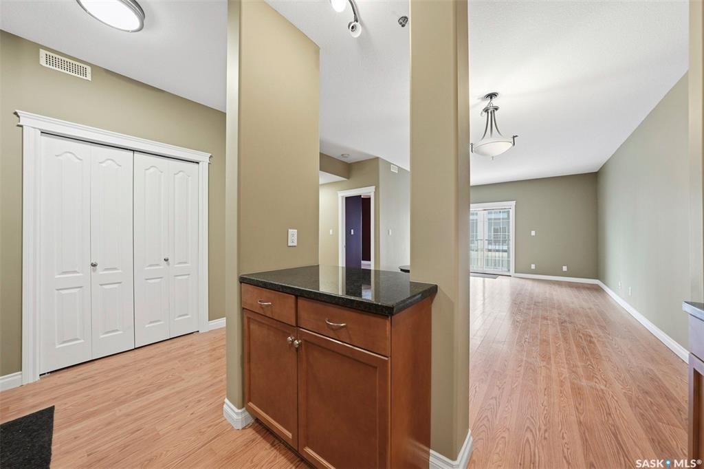 Here is a premium condo in a premium location, walking distance to all amenities, close to the University and an easy commute to downtown. This 1 bedroom condo shows in excellent condition and boasts 9 foot ceilings, infloor heat, and an open concept. Enjoy your morning coffees on the East facing balcony. The balcony is outfitted with a natural gas bbq line for your convenience. Inside this suite you will be impressed by the granite counters, ample cabinet space, and an island ideal for food prep or to sit ...