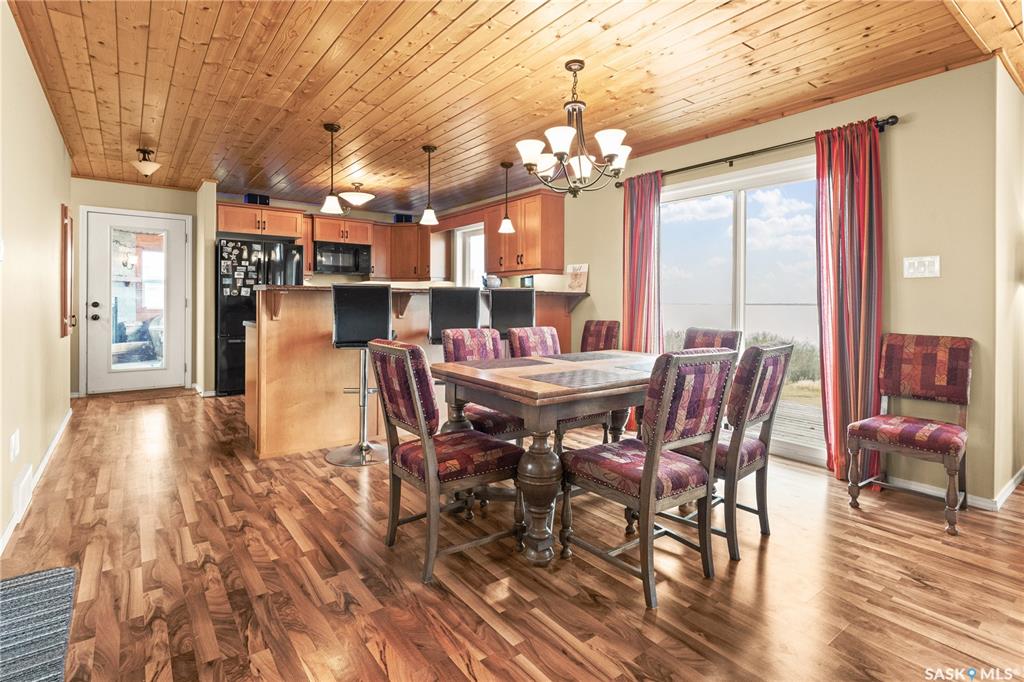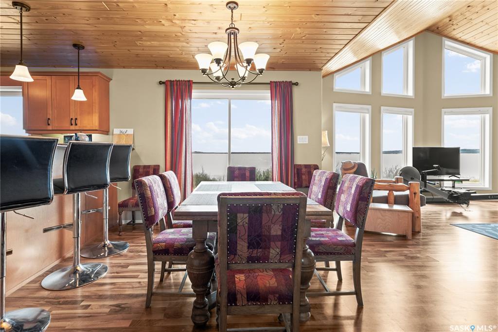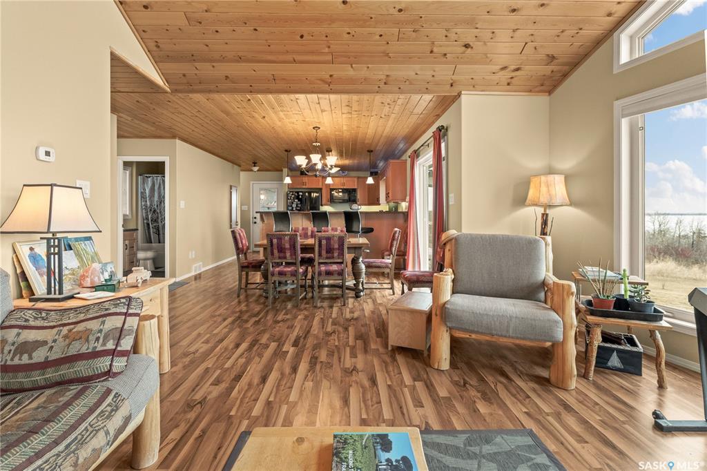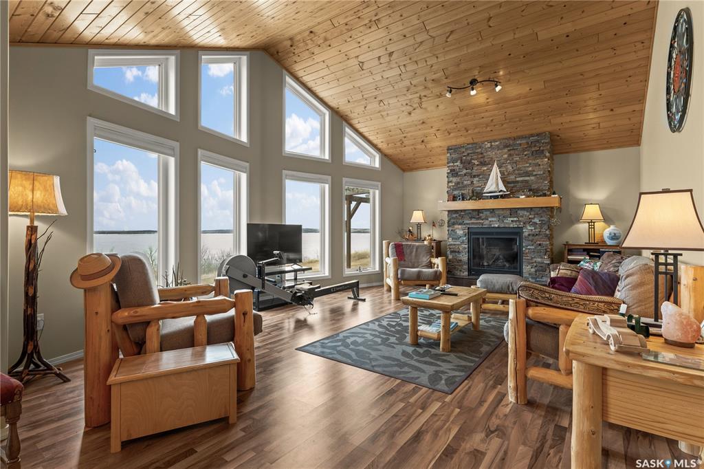 Welcome to your lakeside escape on Redberry Lake. This stunning 1,369 sq. ft. raised bungalow captures your attention the moment you step inside, with sightlines that draw you straight through to the living room. Here, a striking stone gas fireplace and wood paneled ceilings frame peaked windows, showcasing breathtaking panoramic views of the lake. Warm, wood finishes and maple cabinetry create an inviting interior, while nearly every room offers picturesque water views. The thoughtfully designed main leve...