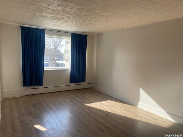 Welcome to Unit 37 – 400 4th Avenue North. An excellent investment opportunity in the heart of downtown Saskatoon. This top-floor, south-facing bachelor suite offers bright, open-concept living with newer paint and flooring throughout. The functional kitchen is equipped with a fridge, stove, and microwave, and includes a large closet providing ample storage space. The unit also features a full 4-piece bathroom. Large windows fill the living area with natural light and offer impressive views of the downtown...