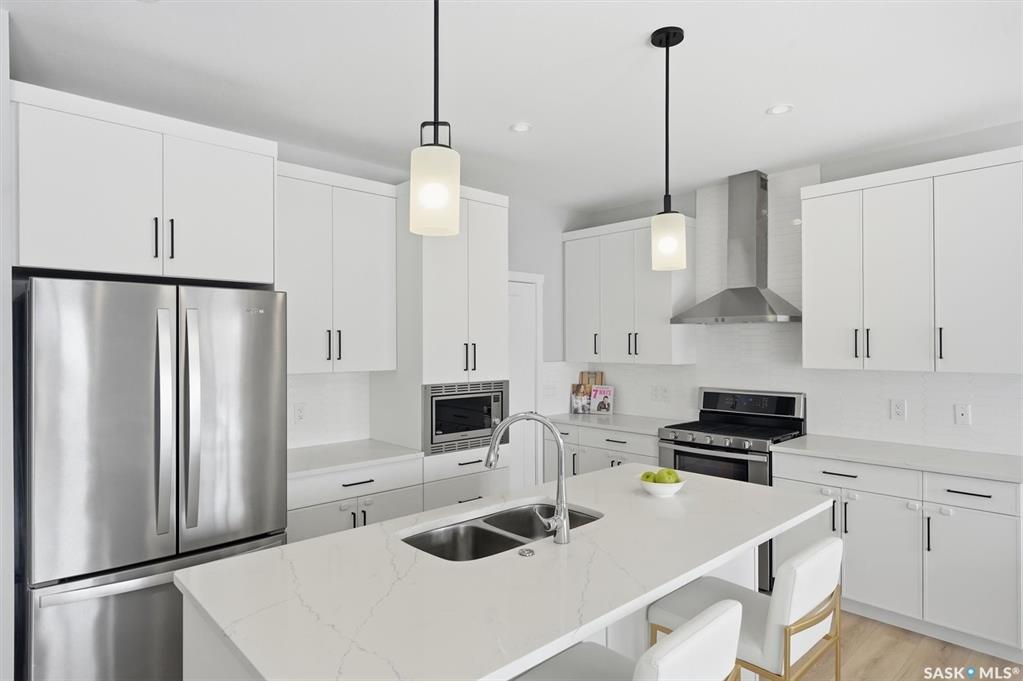 Welcome to 406 Chelsom Manor in the desirable Brighton neighbourhood of Saskatoon. This well designed 1,903 sq ft two storey home offers a functional layout and the added benefit of a fully finished legal two bedroom basement suite. The main floor features a bright living room with a gas fireplace and large windows overlooking the fully fenced backyard. The upgraded kitchen includes modern finishes and connects to a convenient walk through pantry and mudroom, creating a practical and efficient space for eve...