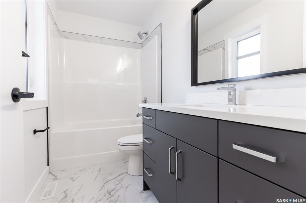 Stunning 2,341 sq ft two-storey by Edgewater Homes , designed with style & function throughout. Features an oversized insulated garage, mudroom with walk-through pantry & prep sink, designer kitchen with quartz countertops & large island, bright great room with oversized patio doors & fireplace, plus a front office/flex space. Upstairs offers a spacious primary suite with tiled shower, standalone tub, walk-through closet to laundry, 2 additional bedrooms, bonus room & 4-pc bath. Saskatchewan New Home Warran...
