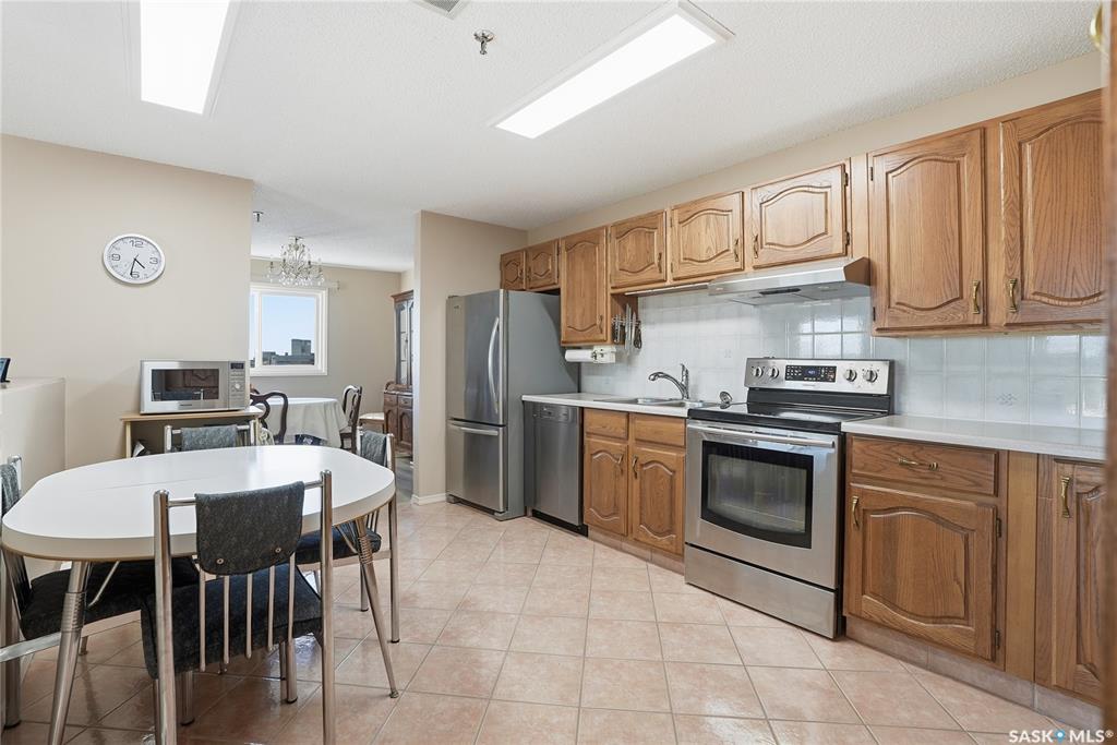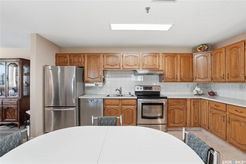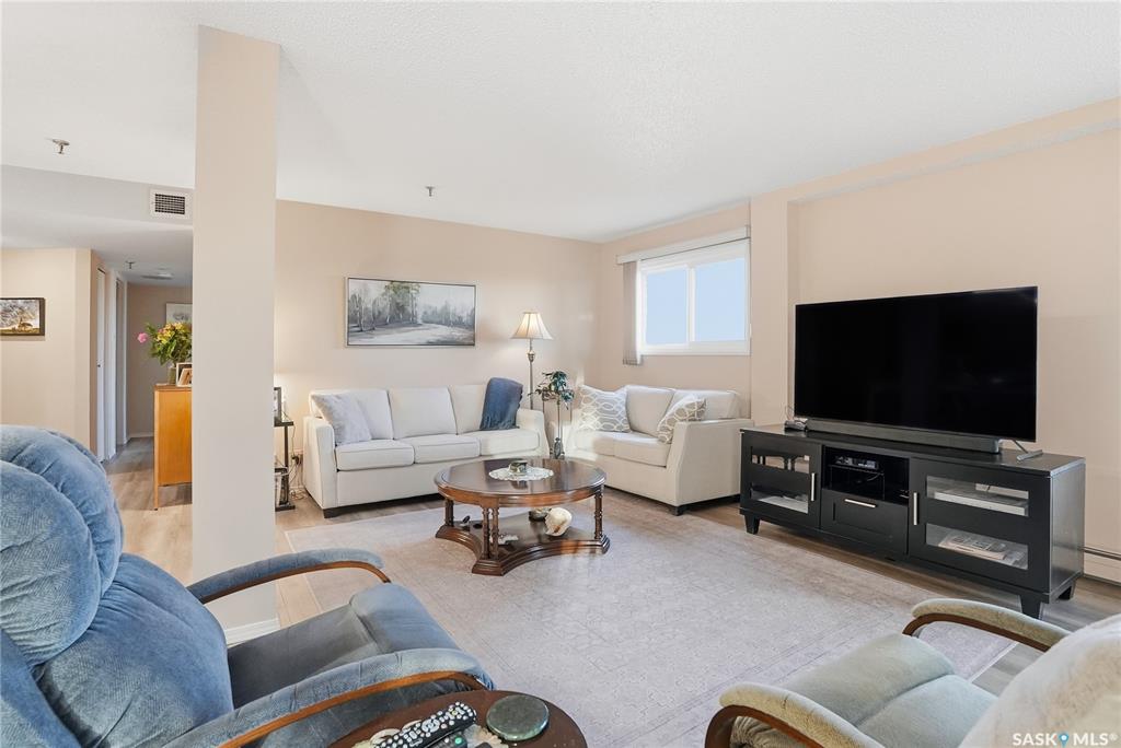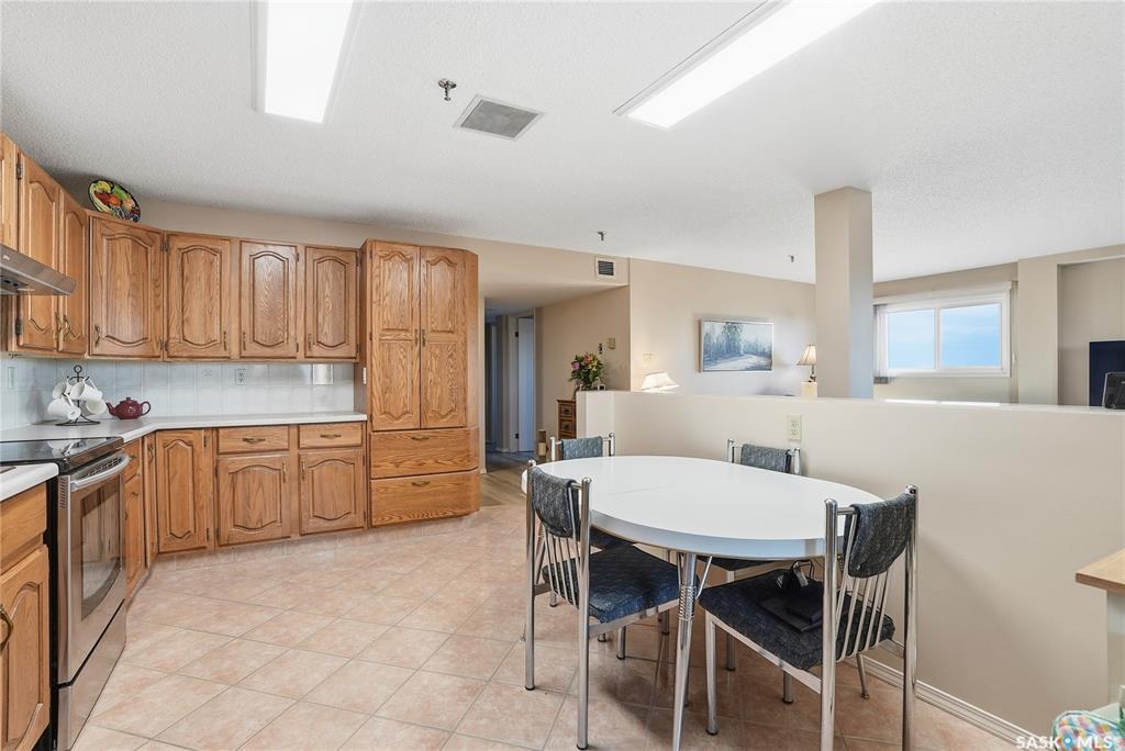 Welcome to unit 1003 – 510 5th Ave North located in the heart of Saskatoon’s desirable City Park neighborhood! This condo greets you with plenty of natural light flowing, a functional layout, and spectacular views overlooking Kinsmen Park! Step into your open concept living area, with laminate flooring, sliding glass door to your balcony with picturesque park views, gas fireplace against a tiled mantle, and recessed lighting. Your kitchen provides ample oak cabinetry, tiled backsplash, stainless steel appli...