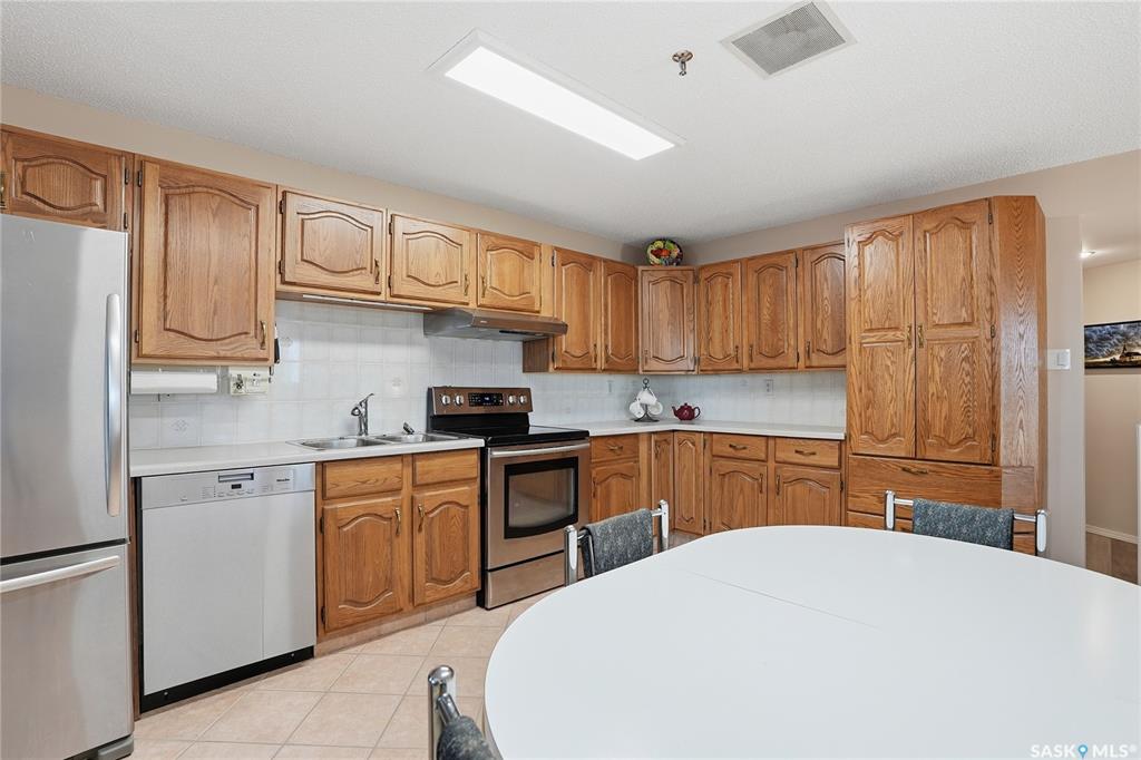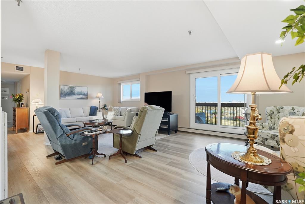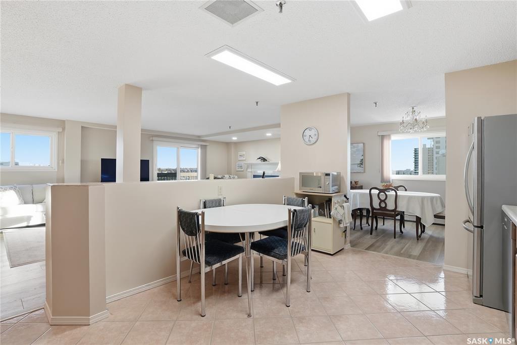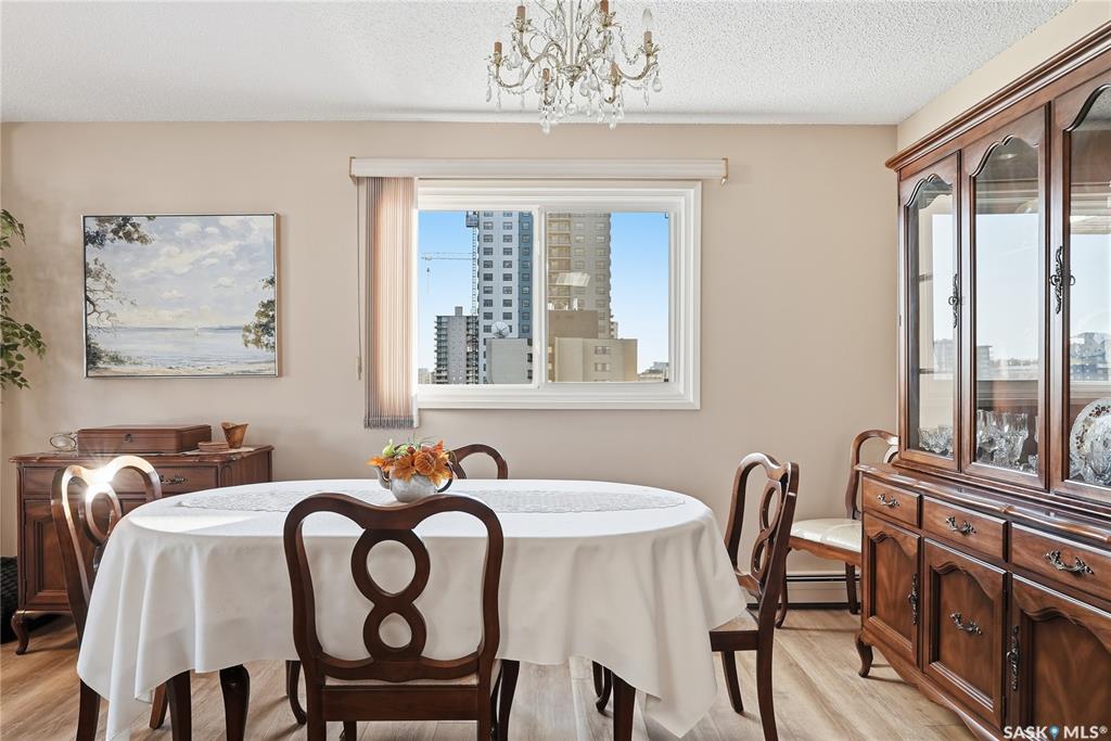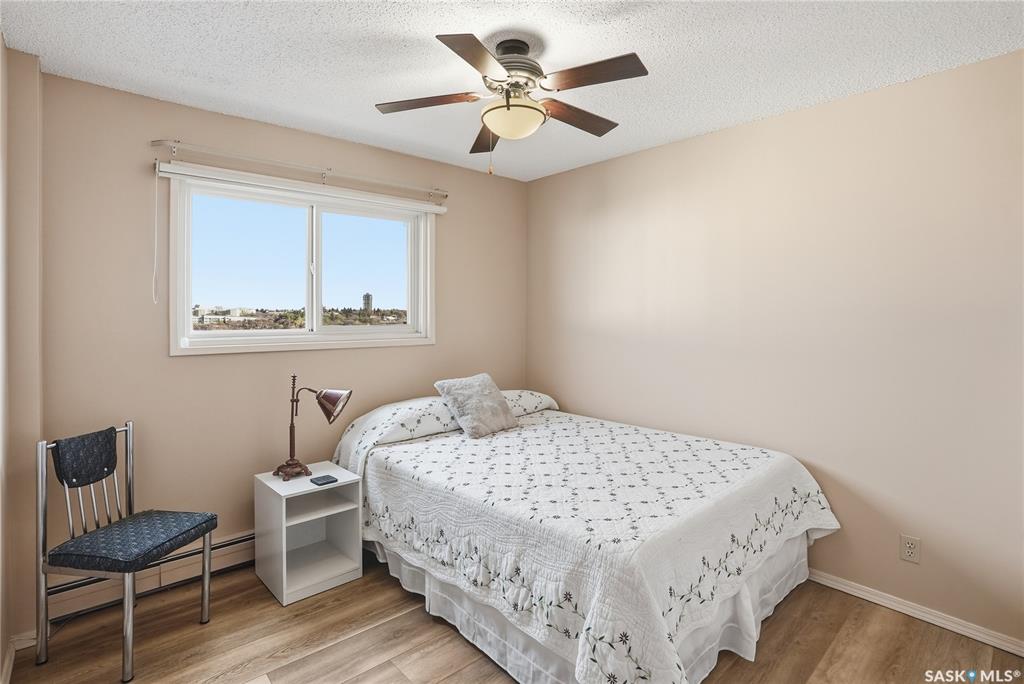 Welcome to unit 1003 – 510 5th Ave North located in the heart of Saskatoon’s desirable City Park neighborhood! This condo greets you with plenty of natural light flowing, a functional layout, and spectacular views overlooking Kinsmen Park! Step into your open concept living area, with laminate flooring, sliding glass door to your balcony with picturesque park views, gas fireplace against a tiled mantle, and recessed lighting. Your kitchen provides ample oak cabinetry, tiled backsplash, stainless steel appli...