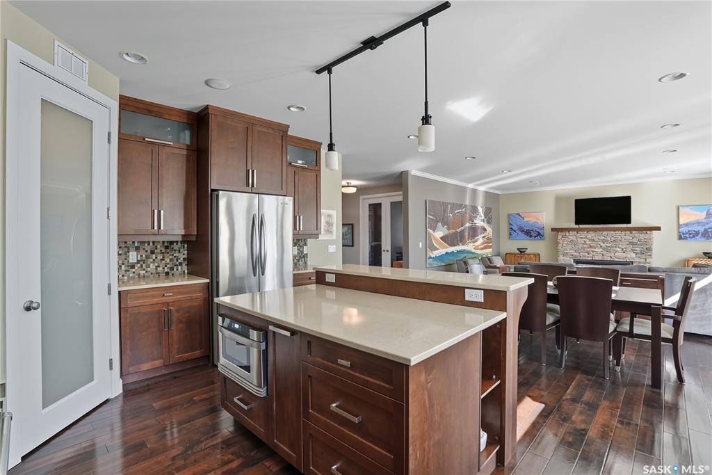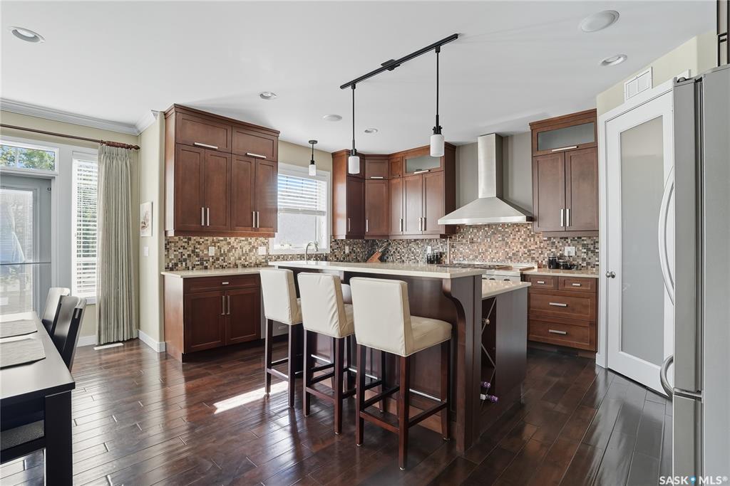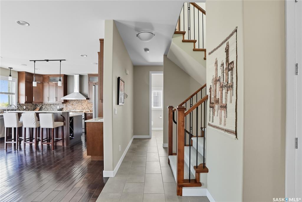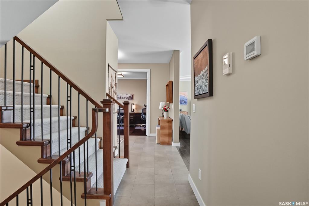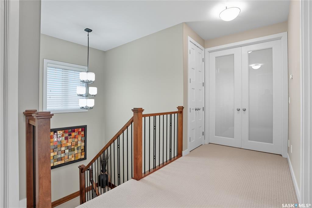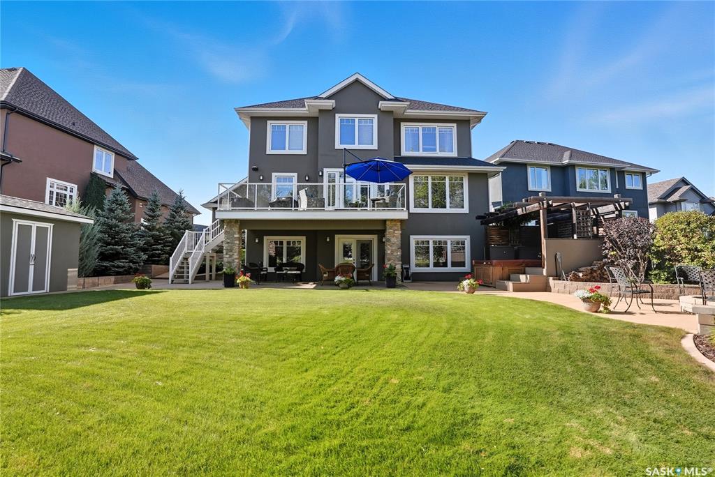 Welcome to 69-602 Cartwright Street – Luxury Living in The Willows Experience refined elegance in this immaculate 2,539 sq ft walkout two-storey, ideally located in Saskatoon’s premier golf community, The Willows. Backing the lush fairways, this professionally landscaped home offers exceptional design, upscale finishes, and seamless indoor-outdoor living. Step into a grand tiled foyer with French doors leading to a stylish main-floor office/den. The open-concept living area is warm and inviting, with gleam...