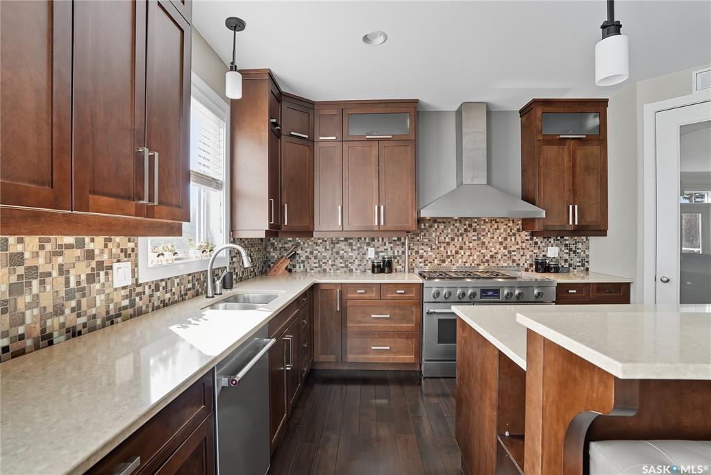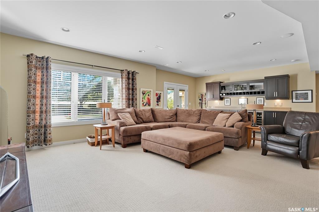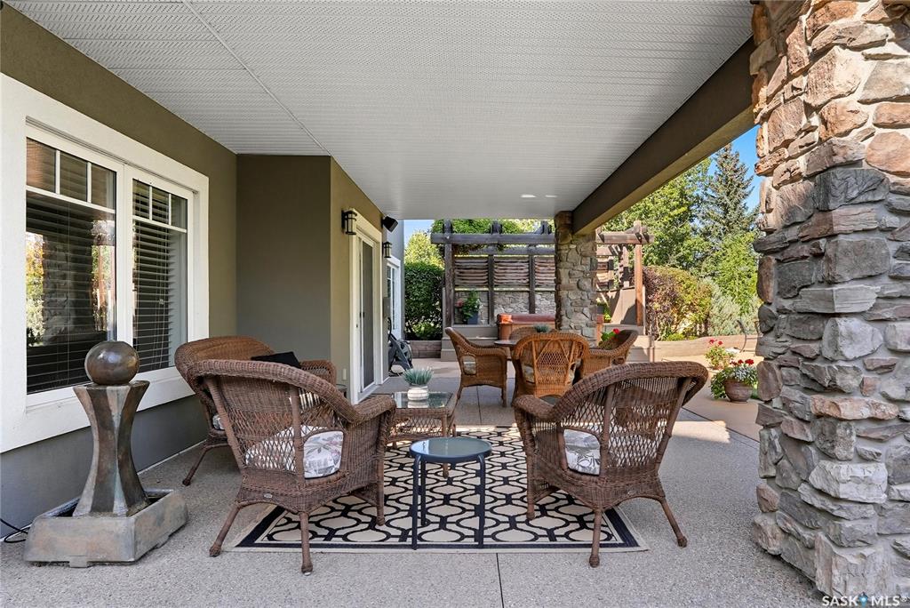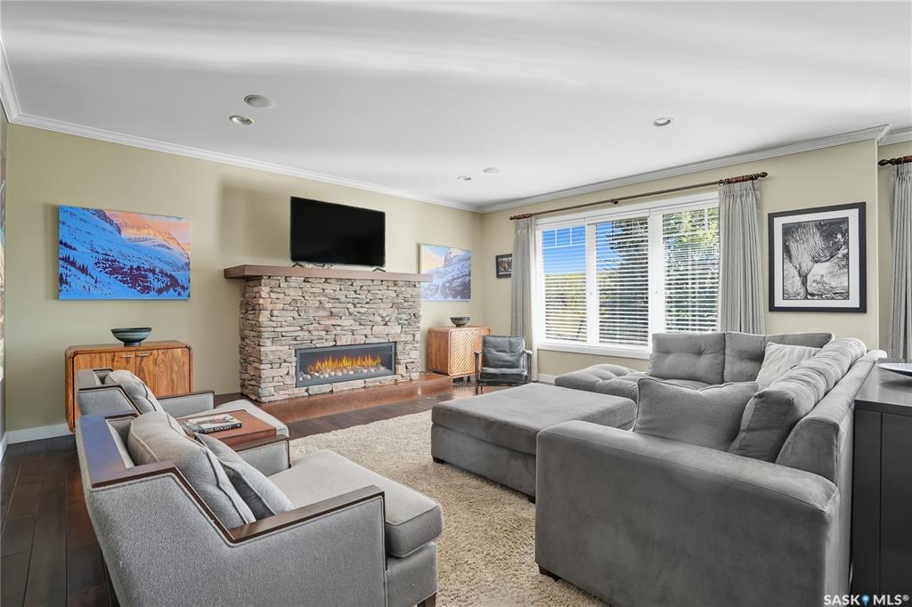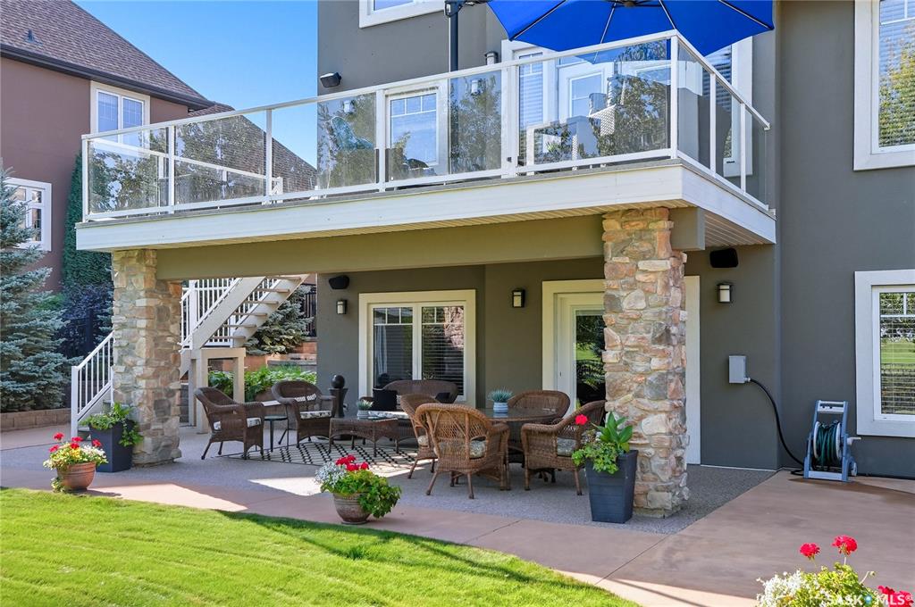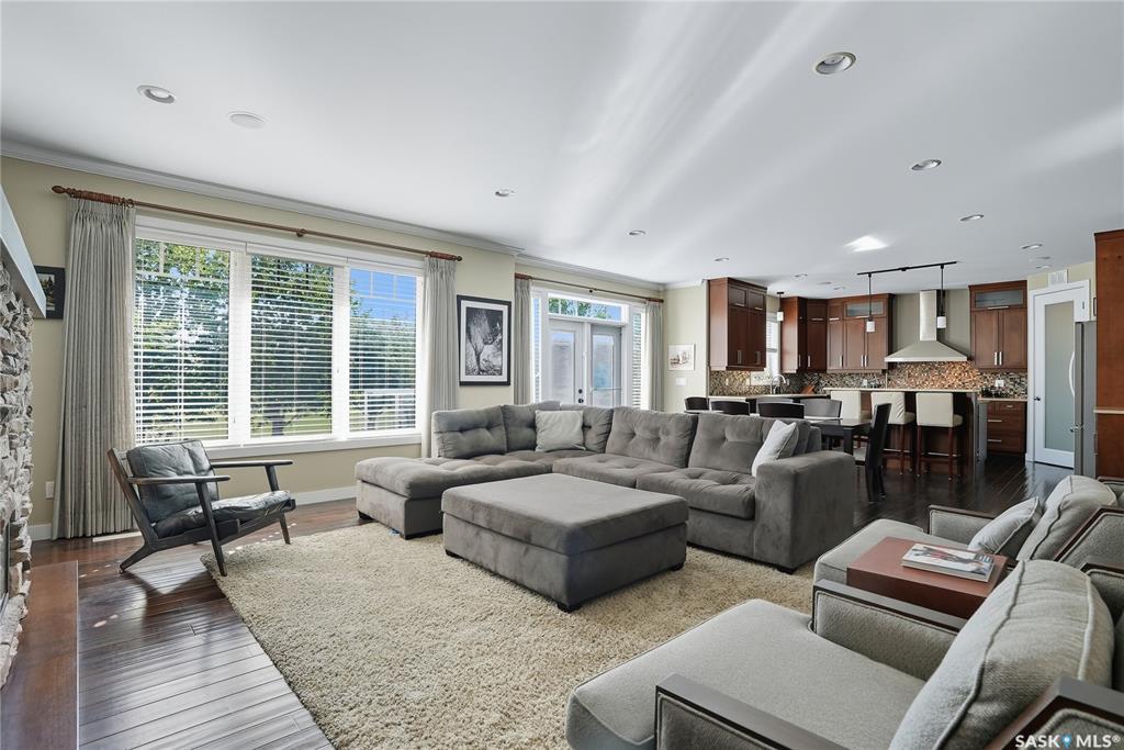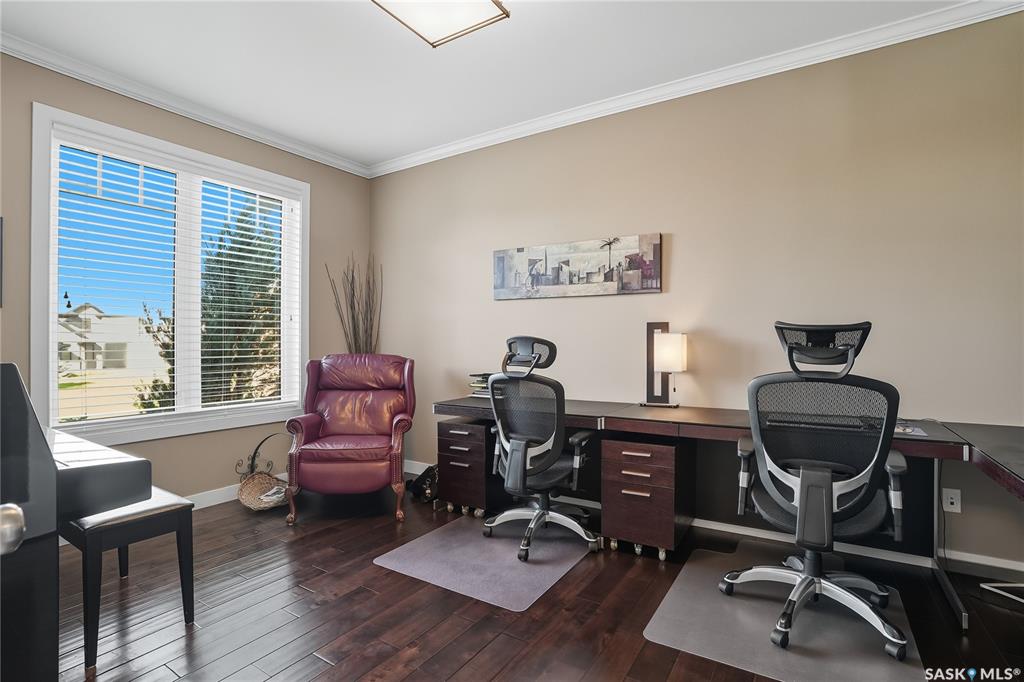 Welcome to 69-602 Cartwright Street – Luxury Living in The Willows Experience refined elegance in this immaculate 2,539 sq ft walkout two-storey, ideally located in Saskatoon’s premier golf community, The Willows. Backing the lush fairways, this professionally landscaped home offers exceptional design, upscale finishes, and seamless indoor-outdoor living. Step into a grand tiled foyer with French doors leading to a stylish main-floor office/den. The open-concept living area is warm and inviting, with gleam...