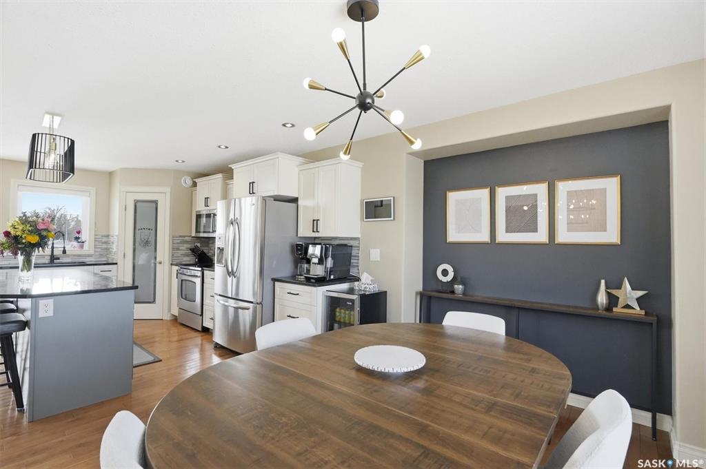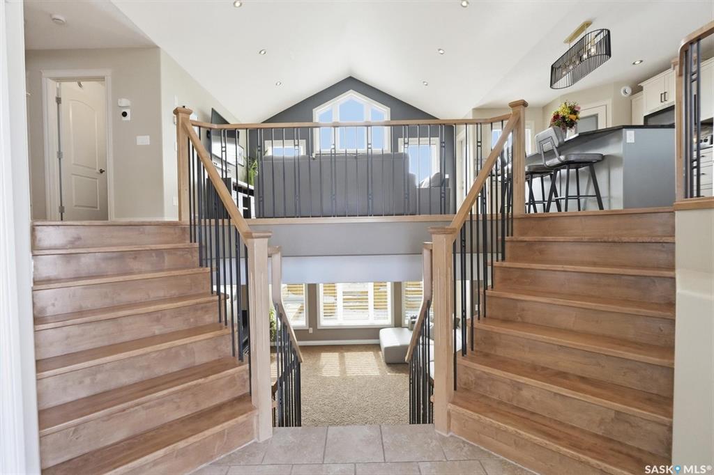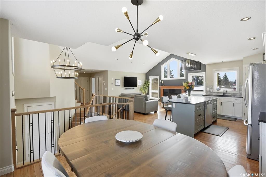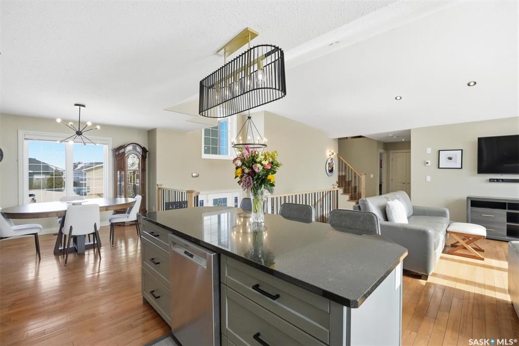 Absolutely stunning home in the vibrant and growing community of Dalmeny, just 12 minutes from Saskatoon. Tucked away on a quiet street, this beautifully designed modified bi-level walkout offers a perfect blend of style, space, and functionality for family living. Boasting five bedrooms plus a den and three full bathrooms, there’s room for everyone. The private primary retreat, featuring vaulted ceilings, is thoughtfully positioned above the garage, while two additional bedrooms are conveniently located on...
