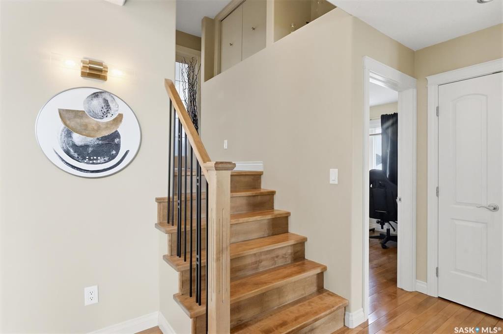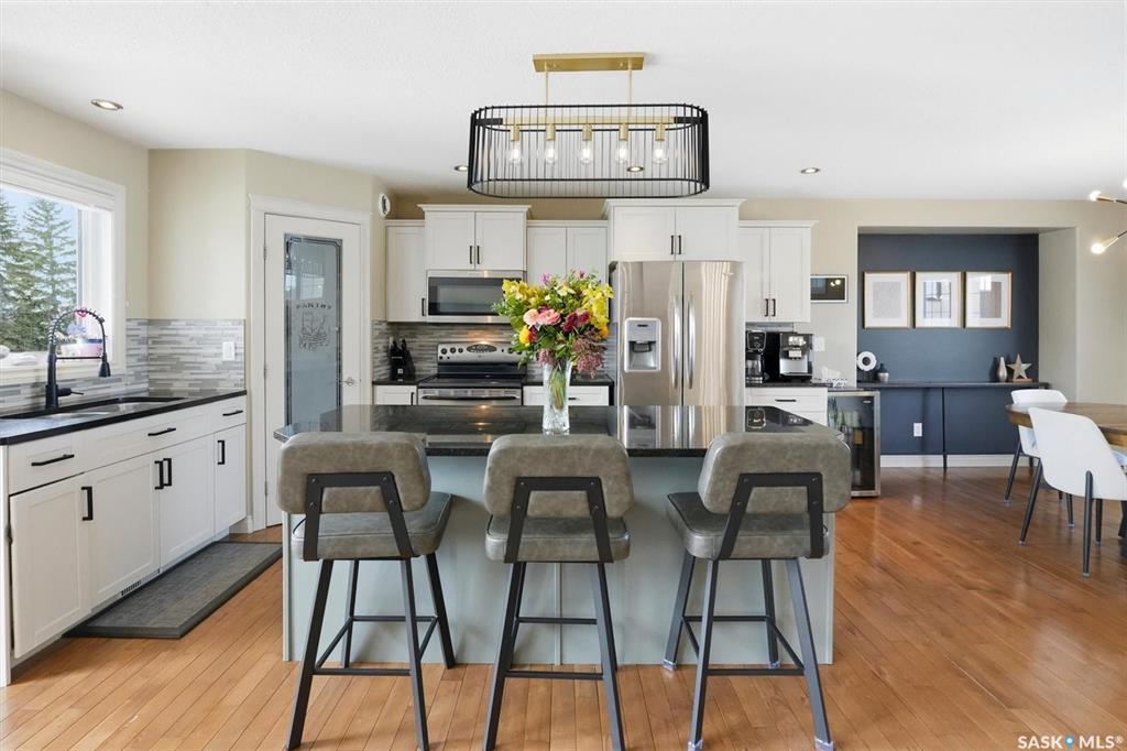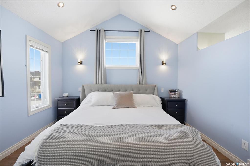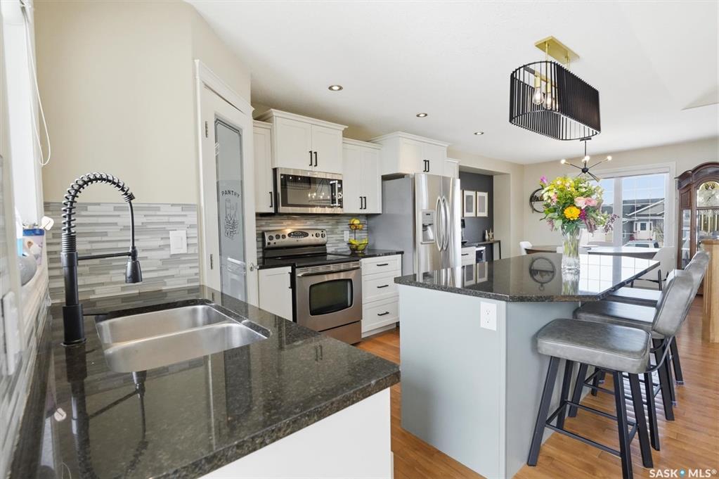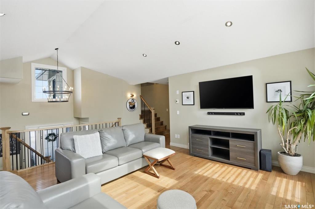 Absolutely stunning home in the vibrant and growing community of Dalmeny, just 12 minutes from Saskatoon. Tucked away on a quiet street, this beautifully designed modified bi-level walkout offers a perfect blend of style, space, and functionality for family living. Boasting five bedrooms plus a den and three full bathrooms, there’s room for everyone. The private primary retreat, featuring vaulted ceilings, is thoughtfully positioned above the garage, while two additional bedrooms are conveniently located on...