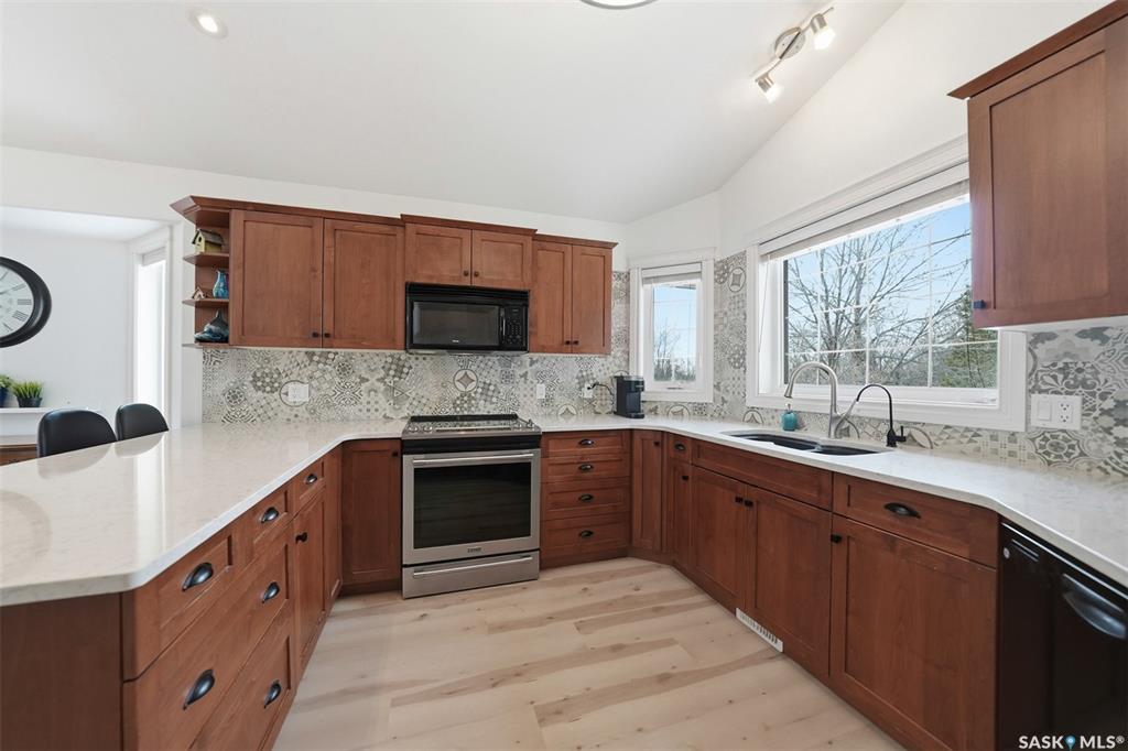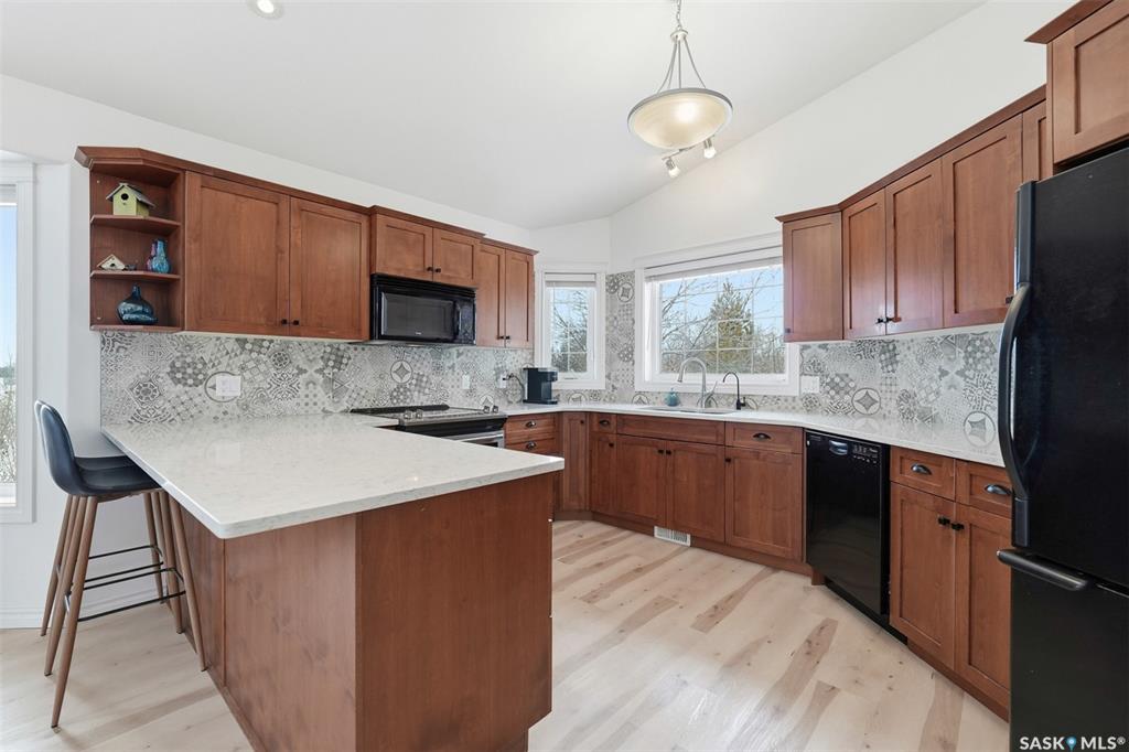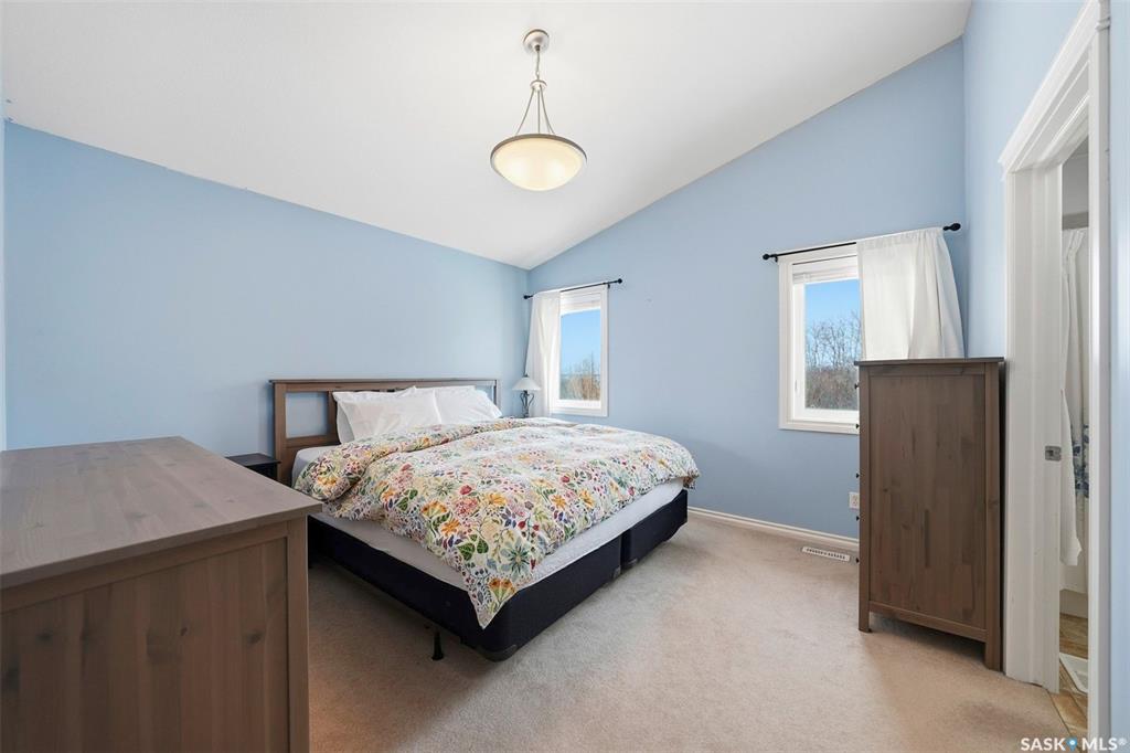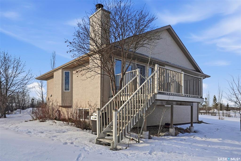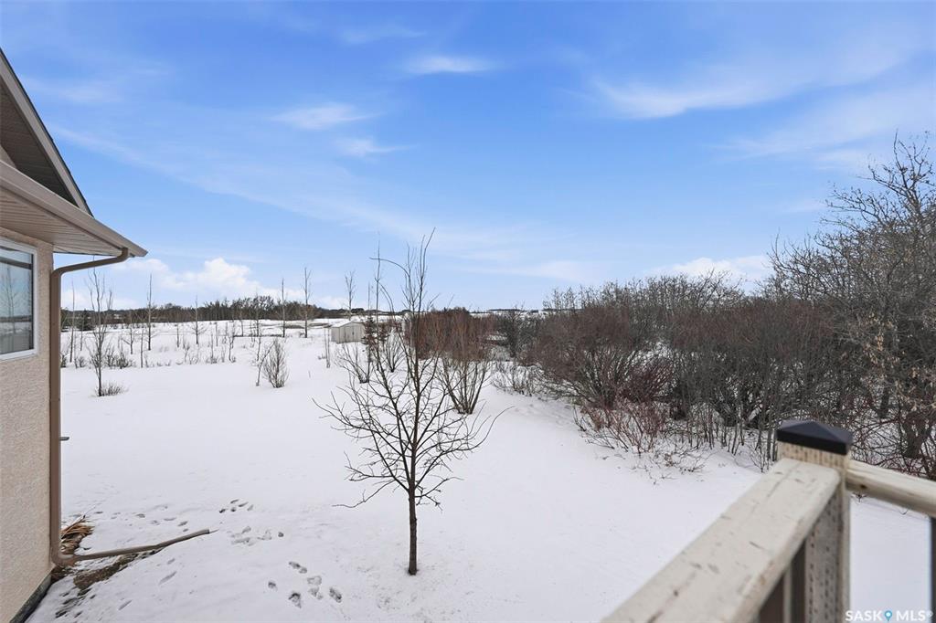 Rare opportunity to own a 14-acre acreage just 10 minutes from Saskatoon city limits. The perfect blend of privacy, efficiency, low utility costs and future potential. Built in 2005 by Ehrenburg, this quality home offers nearly 2,400 sq ft of fully finished well laid out living space. The layout is functional and inviting, with loads of natural light & numerous recent upgrades including new shingles (2023), professionally renovated bathroom (2021), updated flooring (2021), and a patio stone paved drivewa...