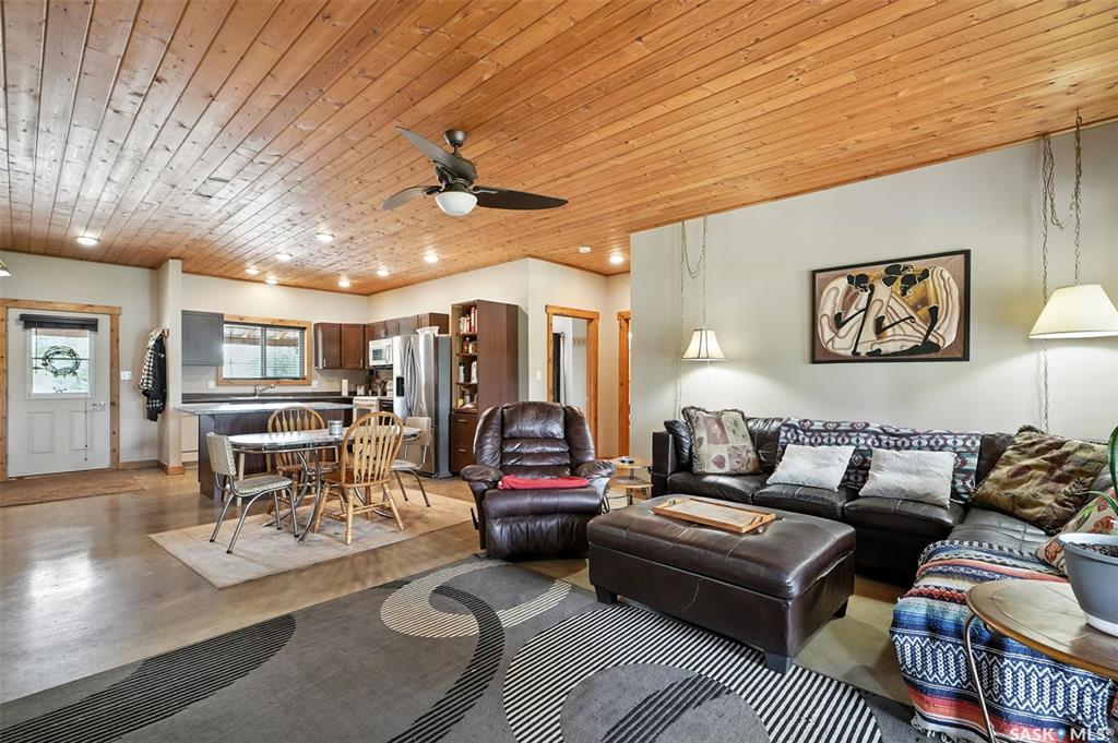 Welcome to this one and kind waterfront private acreage located at Fish Lake, SK offers a serene and picturesque setting. The property spans across 4.99 acres The house was built in 2016 and boast over 1800 sq ft with three spacious bedrooms. The open concept kitchen has plenty of cupboard and counter space with island. Master bedroom has 5pc bathroom! House is equipped with in floor radiant heat and wood burning stove for supplement heat. Head on out the living room door to back deck overlooking the lake. ...